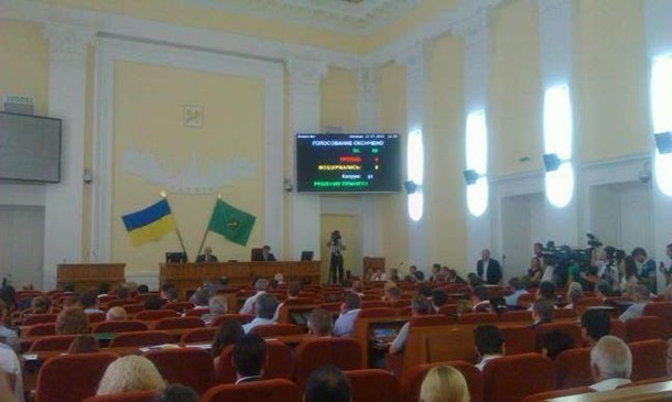 Виступи депутатів-противників рішення активісти, присутні на сесії, неодноразово переривали криками "Ганьба!" і "Валіза, вокзал, Росія!"