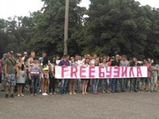Десятки активістів зібралися увечері 12 липня біля міського СІЗО №1 на підтримку журналіста Артема Бузили. Вони розгорнули банер "FreeBuzila" і зажадали негайно звільнити ув'язненого.
