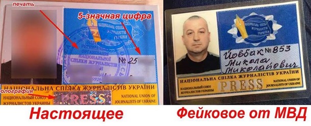 За його словами, журналістське посвідчення скандального Миколи Йовбака, який засвітився у Мукачевому зі зброєю в руках в оточенні міліціонерів, є підробленими.