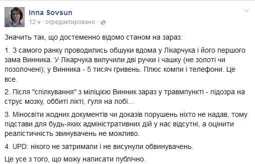 Зазначимо, що перший заступник міністра освіти і науки України Інна Совсун повідомила, що ГПУ проводила обшуки вдома у директора Українського центру оцінювання якості освіти Ігоря Лікарчука та його заступника Володимира Винника.