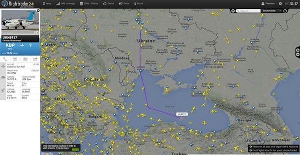 "Судячи з даних онлайн-сервісу FlightRadar, він летів бортом АН-148 через Чорне море. Облетівши Крим, літак рухався вздовж берегів Туреччини, а потім над Грузією, Азербайджаном і Каспієм. Такий складний маршрут обраний через ускладнених відносин з Росією і взаємних заборон літати над своїми територіями ", - йдеться в повідомленні.