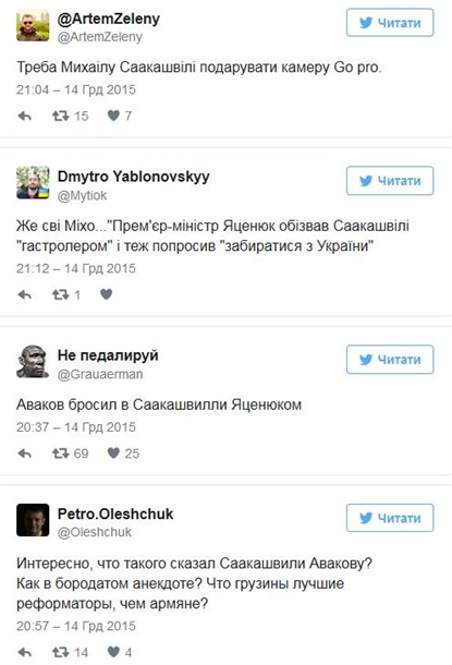 Після скандалу двох політиків соцмережі прийнялися бурхливо обговорювати конфлікт Саакашвілі і Авакова, закликаючи чиновників опублікувати відео сварки.