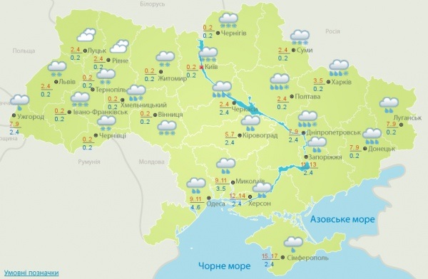 Днем по Україні синоптики прогнозують від 0 до + 7 градусів, на півдні - до +9 .. + 14.