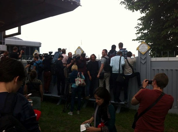 Савченко дуже емоційна, биквально кричить на журналістів. Льотчиця просила, щоб до неї ніхто не торкався, мотивуючи це тим, що вона відвикла за два роки в'язниці від людей.