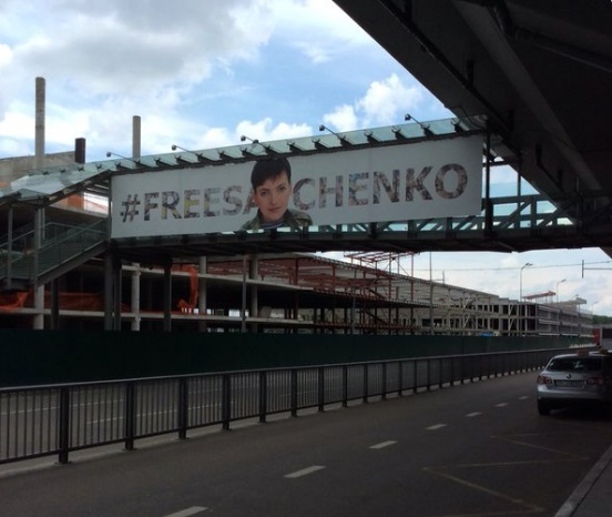14:30 В Борисполі розмістили банер на підтримку Савченко. Хоча поки що незрозуміло, в який аеропорт вона прилетить.