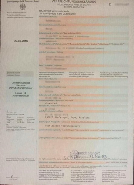 Чиновники відомства у справах іноземців Ганновера вибачилися за прикру, за їхніми словами, помилку, яку вони допустили, оформляючи запрошення-зобов'язання для людини, що живе в Криму. Про це сказано у відповіді відомства на запит DW.