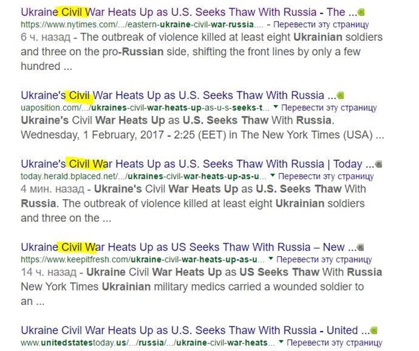 Про це свідчать скріншоти матеріалу журналіста Ендрю Крамера, котрий не раз бував в Україні. Тема звучав як "Ukraine Civil War Heats Up as U.S. Seeks Thaw With Russia", що перекладається як "Громадянська війна в Україні посилюється, тоді як США прагнуть відлиги з Росією".