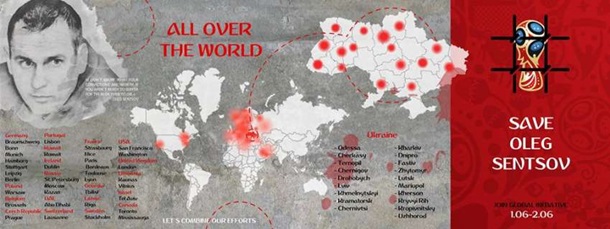 1 і 2 червня в Україні, Росії та в інших країнах світу проходить глобальна акція #SaveOlegSentsov. Її основною вимогою є звільнення всіх українських громадян, які перебувають в ув'язненні в російських в'язницях, включаючи Сенцова, який оголосив голодування.