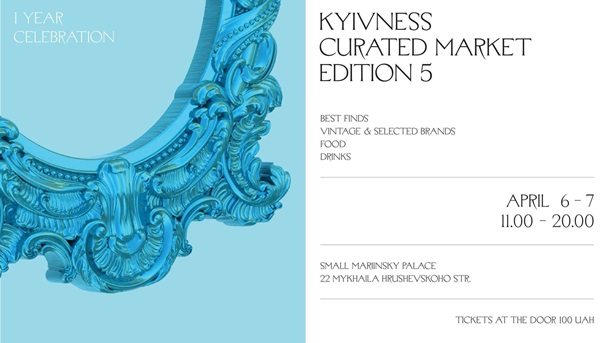 6 - 7 квітня пройде другий маркет подібного типу. Тут продають вінтажний одяг і взуття, декор, книги, парфумерію і косметику, посуд високих марок. Kyivness позиціонує себе як єдиний в Україні курирувальний маркет, який підтримує культуру свідомого вживання, соціальні та міські ініціативи, благодійні та волонтерські організації. Початок - об 11.00