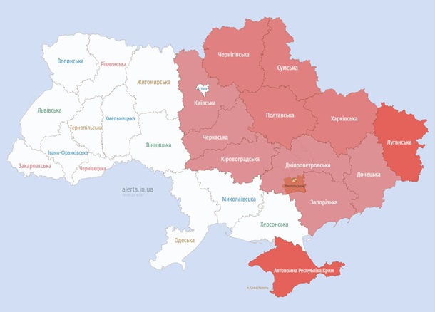Тим часом, повітряна тривога вже оголошена не лише у східних, а й у деяких центральних областях, і, судячи зі всього, може поширюватися далі на захід.