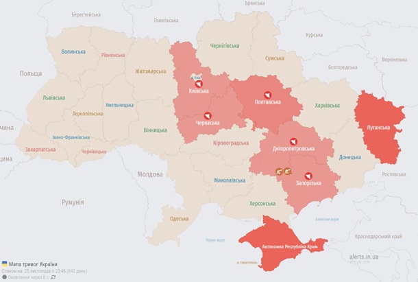 Увечері в суботу, 25 листопада, російські загарбники вкотре намагаються атакувати Україну дронами-камікадзе. Їх запустили з південного напрямку, повідомили Повітряні Сили ЗСУ.