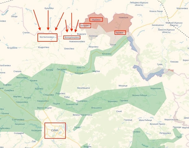 "Довгий час Сумщину (частина території біля кордону – ред) можна було сприймати як сіру зону, адже бійці Сил Оборони намагалися і намагаються стримувати ворога… Однак варто констатувати, що їм (росіянам – ред.) вдалося закріпитися по відтинку Веселівка-Журавка-Новеньке-Басівка і вони продовжують здійснювати спроби зайти в Біловоди, а також складною є ситуація в Локнях", – додають експерти.
