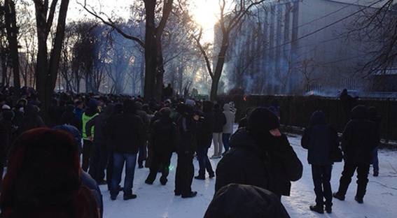 О 14.00 група радикально налаштованої молоді з числа учасників заходу в кількості близько 50 осіб намагалися прорвати оточення міліції, кидаючи в двір ОДА димові шашки і фаєри, а також намагалася зламати паркан.