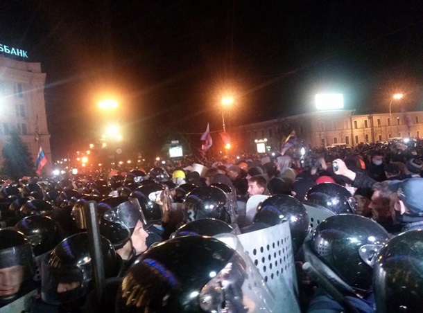 Повідомляється, що міліція просто розступилася і пропустила маніфестантів всередину. Раніше з трибуни перед ОДА "ведучий" повідомив, що атака має назву "Вставай, страна огромная".