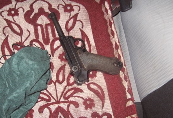 Як повідомив начальник УМВС України в Хмельницькій області Олександр Розізнаний, при огляді в салоні автомобіля було виявлено пістолет марки Парабелум калібру 9 мм зі знищеним номером і без відповідного дозволу на право зберігання та 38 патронів до нього, а також карабін марки Мосіна калібру 7,62 мм без відповідного дозволу.