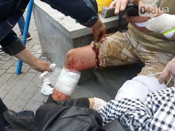 048, на розі Преображенської та Дерибасівської лежить хлопець, накритий українським прапором.