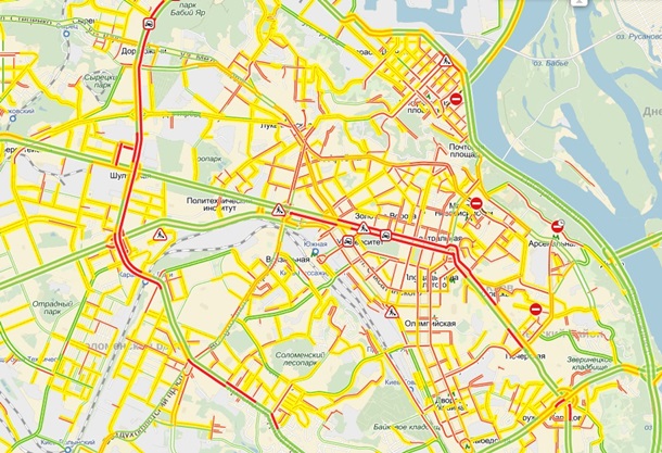 Затори в Києві: карта Яндекса
