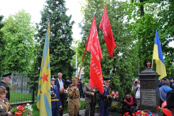 У Харкові Союз радянських офіцерів провів заборонену судом ходу. Ветерани в супроводі міліції і 30 молодих людей пройшли до пам'ятного каменя, де на них уже чекали активісти "Громадської варти Харкова", а також проукраїнськи налаштована молодь. Між ними виникли словесні перепалки, а в одного з учасників акції зірвали з грудей георгіївську стрічку.