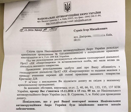 Вони нібито проходять у справі компанії "Енергомережа" як свідки і мають з'явитися на допит 15 листопада.