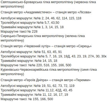 Київпастранс опублікував маршрути наземного транспорту, які замінять пересування гілками метро: