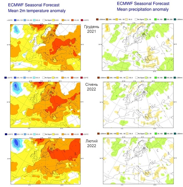 Згідно з Європейським центром середньострокових прогнозів, з грудня до лютого на більшій частині Європи очікується позитивна аномалія температури повітря, особливо в її східній частині, розповів синоптик.