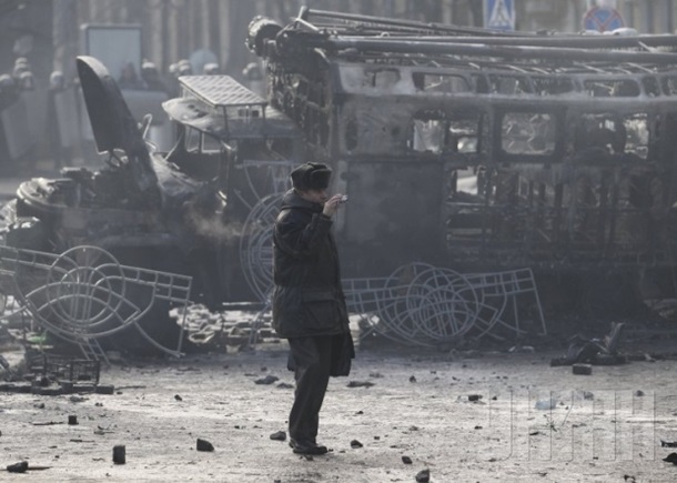 14:59 Після двох днів запеклого протистояння на вулиці Грушевського в центрі Києва нарешті вже