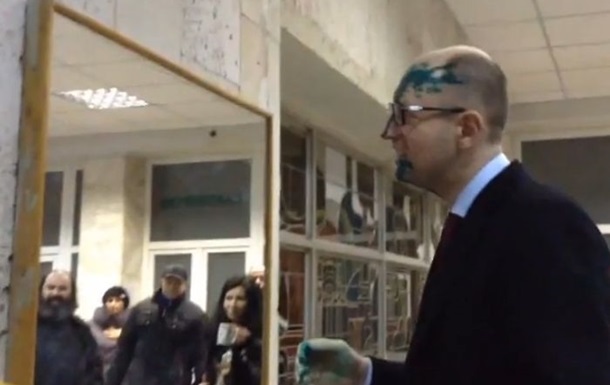 Главу фракції Батьківщина Арсенія Яценюка і першого заступника голови ВО Батьківщина Олександра Турчинова невідомі облили зеленкою в холі ЦКЛ №5 у Харкові.