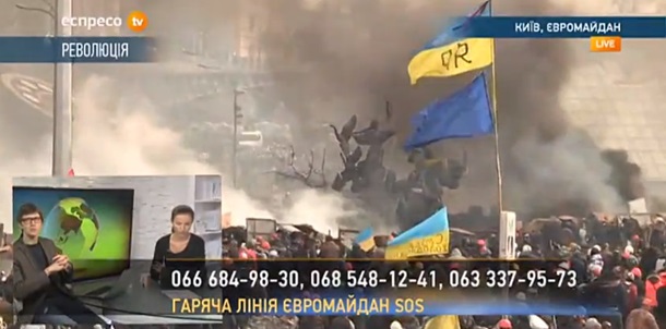 13:42 Журналістка Телевізійної служби новин Наталка Пісня отримала поранення ноги, висвітлюючи протистояння на вулиці Грушевського.