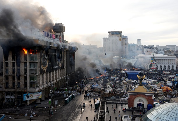 12:41 Оператору британського телеканалу Sky News вдалося зняти на відео, як у центрі Києва бійці спецпідрозділу міліції Беркут стріляють по протестувальниках із автомата Калашникова.