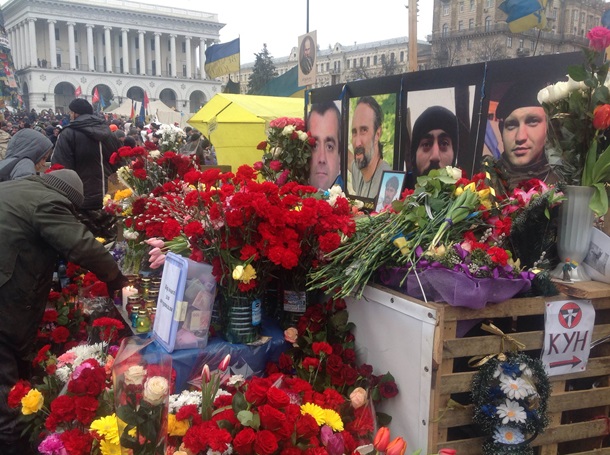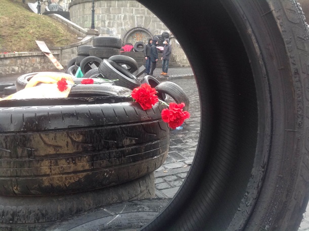 Як повідомляє Інтерфакс-Україна в п'ятницю, 23 лютого, квіти кладуть у декількох точках по вулиці Інститутській - біля верхнього входу в станцію метро Хрещатик, на землі біля дерев і ліхтарних стовпів, на яких видно сліди від куль, а також на барикадах і на пагорбі біля квіткового годинника.