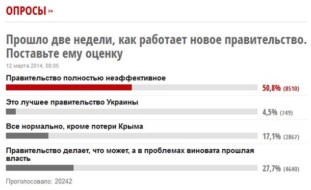 І тільки 4,5% відвідувачів сайту оптимістично заявляють, що нинішній уряд - найкращий.