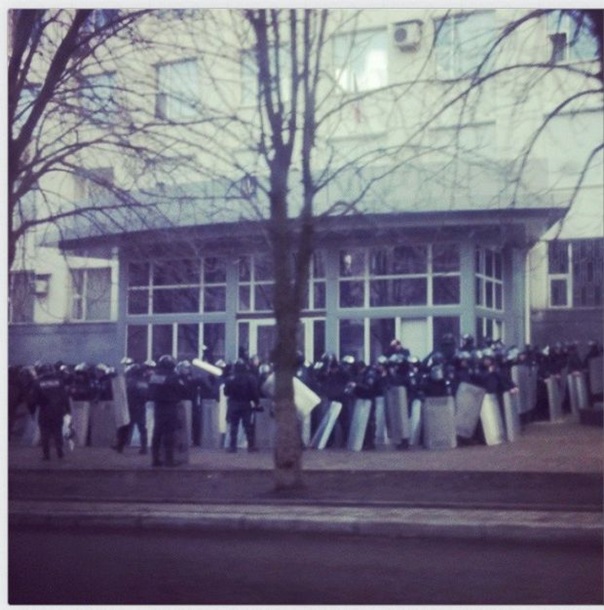 14:56 Міліція виставляє оточення біля будівлі СБУ.