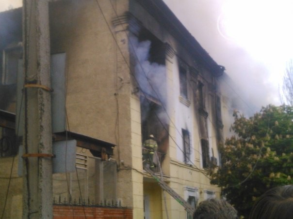 Інформації про постраждалих під час пожежі немає. Також вчора повністю вигоріли барикади, які представники ДНР будували біля входу в міськраду.