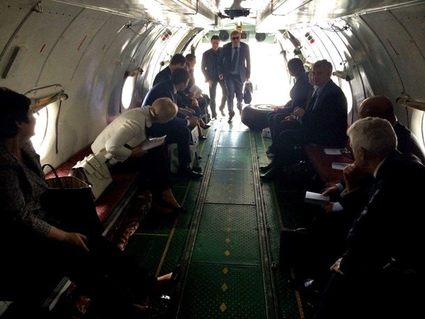 Члени Кабінету Міністрів прибули на виїзне засідання у Миколаїв на військовому літаку, про це повідомляє міністр молоді та спорту Дмитро Булатов на своїй сторінці у Facebook в середу, 21 травня.
