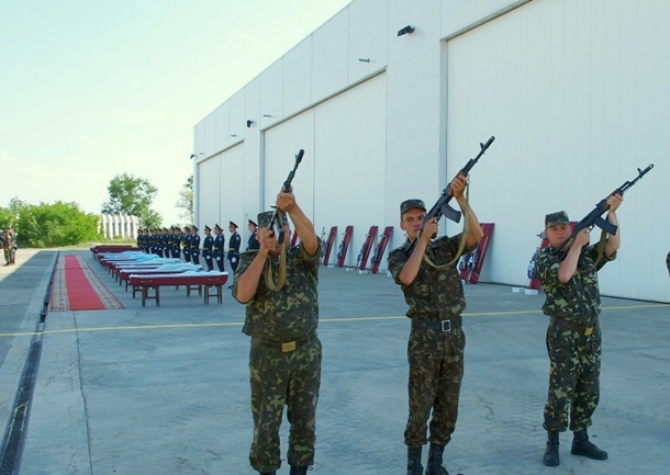 Під звуки Державного гімну України та залпи військового салюту на злітно-посадковій смузі відбувся ритуал прощання. На церемонії були присутні керівний склад оперативного командування, військовослужбовці, прикордонники, бійці Національної гвардії.