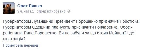 Про це у своєму Facebook написав народний депутат Олег Ляшко.