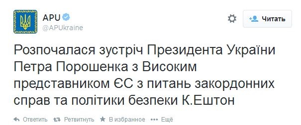 У Мінську розпочалася зустріч Президента України Петра Порошенка з Верховним представником ЄС із закордонних справ і політики безпеки Кетрін Ештон. Про це повідомляє прес-служба глави держави в Twitter.