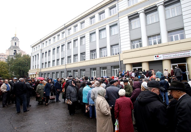 AP/ Черга по гуманітарну допомогу в Донецьку. Поки не до виборів.