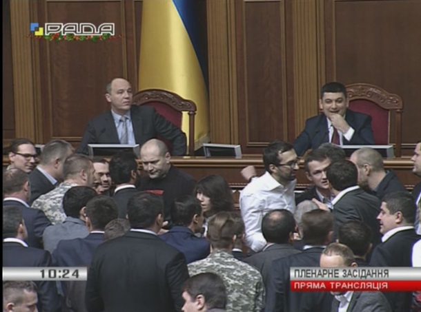 Незадоволені результатом голосування депутати блокували трибуну Верховної Ради.