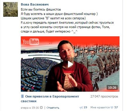 У той же час на своїй сторінці у Вконтакте вчора ввечері Васянович прокоментував відео Анатолія Шарія, в якому той розповідає про цю фотографію на виставці.