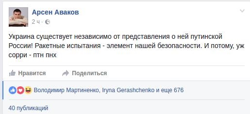 За словами глави МВС Арсена Авакова, ракетні навчання є елементом безпеки України.