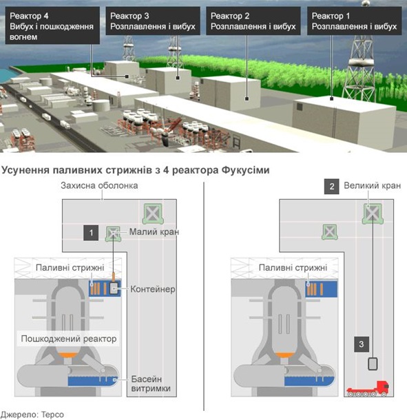 Загалом потрібно буде вилучити зі зруйнованих реакторів понад 1500 твелів. За словами кореспондентів, ця ризикована і небезпечна операція триватиме цілий рік.