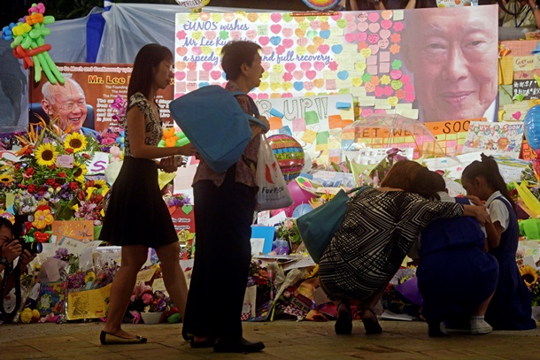 Люди почали приносити квіти до будівлі лікарні, де помер Лі Куан Ю (фото: АР)