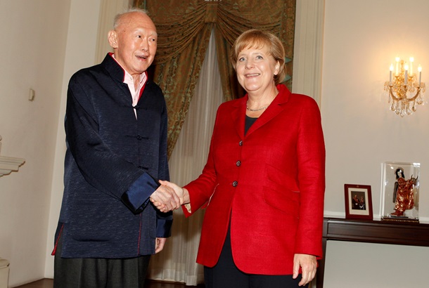 Лі Куан Ю і канцлер Німеччини Ангела Меркель (фото: АР)