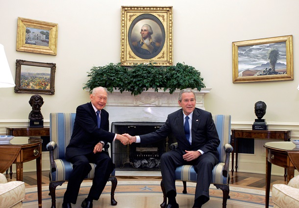 Лі Куан Ю і колишній президент США Джордж Буш-мол.