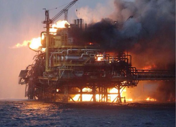 Вісім пожежних катерів гасять нафтову платформу біля берегів Мексики