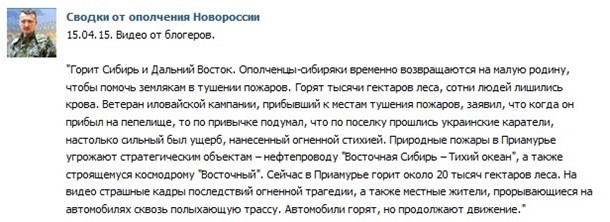 У пабліках сепаратисти в соцмережах повідомляють, що "ополченці" –сібіряки, які воюють на Донбасі, повертаються на батьківщину в Росію допомагати боротися з наслідками стихії.