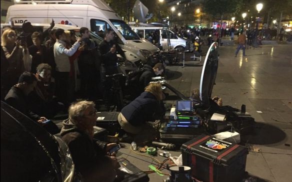 Дождю блогер Ілля Варламов, який перебуває на місці подій, люди покладали на площі квіти у пам'ять про загиблих внаслідок терактів 13 листопада. У якийсь момент на площі почалася паніка.