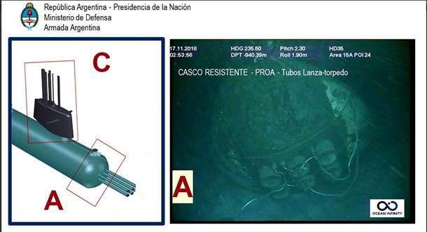 Військово-морські сили Аргентини опублікували в Twitter перші фото підводного човна Сан-Хуан, який було знайдено через рік після зникнення. На знімках видно рушійний гвинт субмарини, що лежить окремо від зруйнованого корпусу.