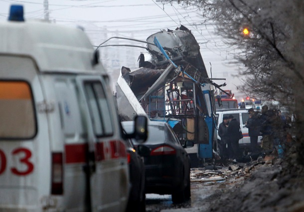Нагадаємо, в понеділок вранці, 30 грудня, в одному з тролейбусів Волгограда стався вибух. Від тролейбуса залишився один металевий каркас, навколо перебувають тіла загиблих.